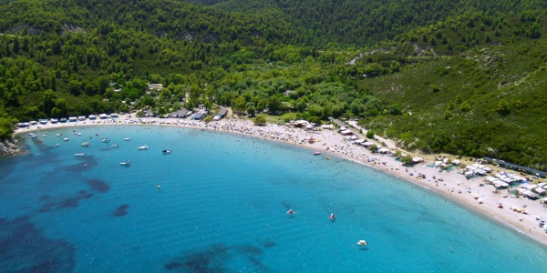 Platanitsi is located about 5km north of Sarti, the entrance to the beach of Platanitsi is controlled. When you leave the main street of Sithonia, cross a planted area of about 50 meters to get to the camping entrance. From there, as soon as you get the relevant licence, head towards to the beach of 550 meters. It is about a wonderful, sandy beach, divided in the middle by a stream. The beautiful green and blue waters along with the view to Mount Athos just opposite will leave you speechless.